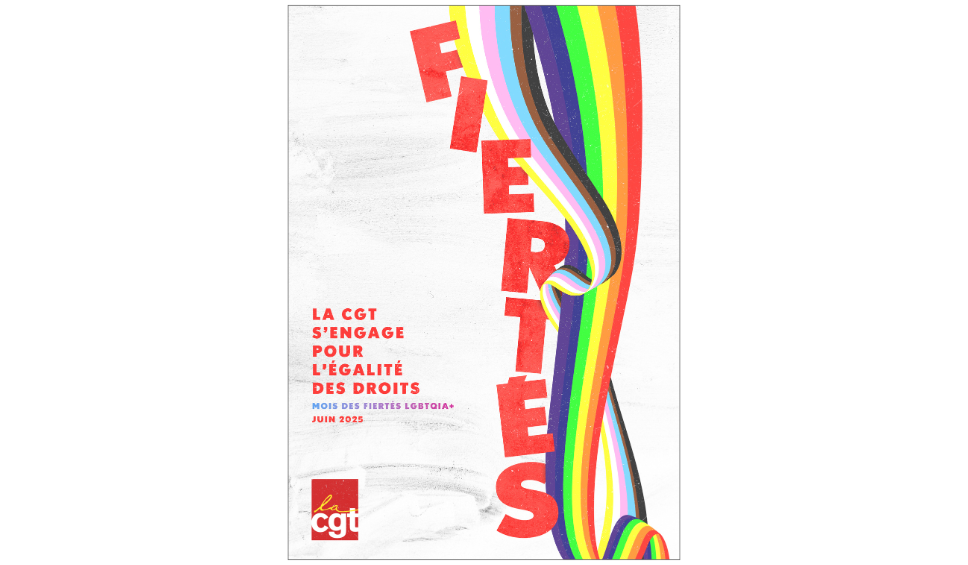 Agir pour l’égalité des droits : un engagement de la CGT Discriminations, violences, invisibilisation : au travail aussi, les personnes LGBTQIA+ subissent des injustices. Depuis près de 30 ans, la CGT s’organise pour faire reculer les discriminations et conquérir l’égalité des droits au travail pour les personnes LGBTQIA+. Car si des avancées législatives ont été obtenues, la réalité du monde du travail reste souvent marquée par des inégalités, des violences, du silence ou de l’invisibilisation. La CGT revendique une société et un monde du travail inclusifs, où chacune et chacun puisse vivre et travailler librement, sans crainte ni discrimination. Affiche CGT pour le Mois des Fiertés Affiche A3 pour impression – télécharger Affiche A3 pour impression – fonds perdus – télécharger Affiche A3 pour affichage numérique – télécharger visuel réseaux sociaux – télécharger Guide syndical « Lutter contre les discriminations LGBTQIA+ au travail » Télécharger le guide Badge Télécharger le badge Autocollant Télécharger l’autocollant → Tract intersyndical pour la Marche des Fiertés à télécharger ici