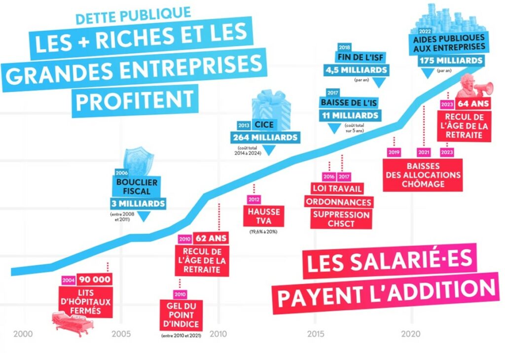 Avec ses annonces, le Premier ministre vient d’ouvrir un chantier aussi brutal qu’idéologique. Ce n’est pas un plan d’économies, c’est une déclaration de guerre aux droits des travailleuses et des travailleurs. Le gouvernement responsable de la situation économique du pays ne se remet jamais en cause notamment sa politique de l’offre. Au lieu d’ouvrir les yeux sur les urgences sociales – salaires, conditions de travail, santé, éducation, climat – le gouvernement choisit de faire payer une nouvelle fois les travailleur·euses, notamment les privé·es d’emploi, et stigmatise les agent·es du service public. Au lieu de mettre à contribution ceux qui sont responsables du déficit, les plus riches et les grandes entreprises qui ont bénéficié de 73 Milliards de baisse d’impôts chaque année et touchent 211 milliards d’aides publiques, le gouvernement fait encore payer l’addition aux travailleuses et aux travailleurs, aux retraité·es et précaires. Au menu : une cure d’austérité sans précédent pour le monde du travail : Une « année blanche », c’est à dire le gel des pensions des retraité·es, des prestations sociales (aides au logement, allocation adulte handicapés, allocations familiales…), des budgets des services publics, des salaires des fonctionnaires et l’augmentation des impôts et de la CSG. Cela se traduira donc par un appauvrissement de chacune et de chacun de plusieurs centaines d’euros chaque année ; Après nous avoir volé 2 ans de vie, le gouvernement veut nous imposer 2 jours de travail gratuit avec le vol de 2 jours fériés, dont le 8 mai, jour de la victoire contre le nazisme ! Déremboursements des médicaments et des consultations, notamment pour les malades en affections de longue durée ; Suppression de 3000 postes de fonctionnaires et de nombreuses agences de l’État, et non-remplacement d’un fonctionnaire sur trois. C’est moins de pompiers, d’infirmier·es, d’enseignant.e.s… Braderie du patrimoine de l’État et privatisations ; Un nouveau tour de vis, le plus violent de tous, pour les privé·es d’emploi dont les droits ont déjà été divisés par 2 depuis qu’Emmanuel Macron est Président de la République ; La volonté d’imposer une remise en cause tous azimuts des droits des salarié·es avec des mesures qui pourraient être prises par ordonnance dès l’automne Par contre, la nécessaire justice fiscale est encore une fois renvoyée aux calendes grecques. La CGT dénonce avec la plus grande fermeté cette fuite en avant austéritaire. Le premier ministre ose expliquer aux travailleuses et aux travailleurs qu’il faut travailler plus sans dire un mot sur les centaines de milliers de licenciements en cours et sur le naufrage de la politique de l’offre qui a coulé nos finances publiques sans réindustrialiser le pays. Ces annonces sont tout aussi injustes qu’inefficaces. Elles auront un impact récessif violent et ne feront qu’amplifier les difficultés économiques du pays. Elles vont plonger des milliers de familles dans la pauvreté qui atteint déjà un niveau record notamment chez les femmes et les jeunes. On ne soigne pas les finances publiques en saignant les droits sociaux et les services publics ! Ces annonces, faites-en plein cœur de l’été, alors que des millions des travailleurs et de travailleuses ne peuvent pas partir en vacances, sont en total décalage avec les attentes du monde du travail. Elles bradent notre avenir en tournant le dos aux investissements indispensables pour la transition écologique, la recherche et l’éducation, la santé, l’industrie. Le Premier ministre reconnaît lui-même qu’il n’est pas en situation d’imposer sa cure d’austérité et d’appauvrissement. Rien n’est joué ! L’heure est à préparer la mobilisation. La CGT mettra tout en œuvre pour empêcher ces violents reculs sociaux
